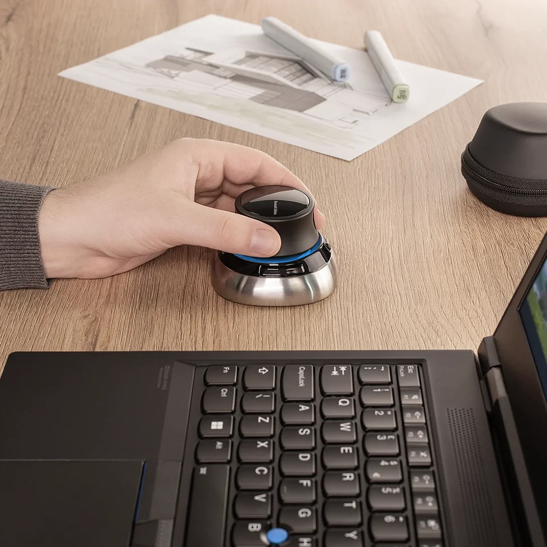 3Dconnexion SpaceMouse Wireless ypač naudingas specialistams, dirbantiems su 3D modeliais, sudėtingomis konstrukcijomis ir dideliais surinkimais, kai būtina nuolatinė modelio peržiūra iš skirtingų kampų. Naudojant SpaceMouse, viena ranka valdoma 3D erdvė, o kita tuo pačiu metu gali dirbti su pele ar klaviatūra. Toks darbo principas ženkliai pagerina darbo ritmą, sumažina pasikartojančių veiksmų kiekį ir padeda išlaikyti ergonomišką darbo poziciją ilgų projektavimo sesijų metu.
