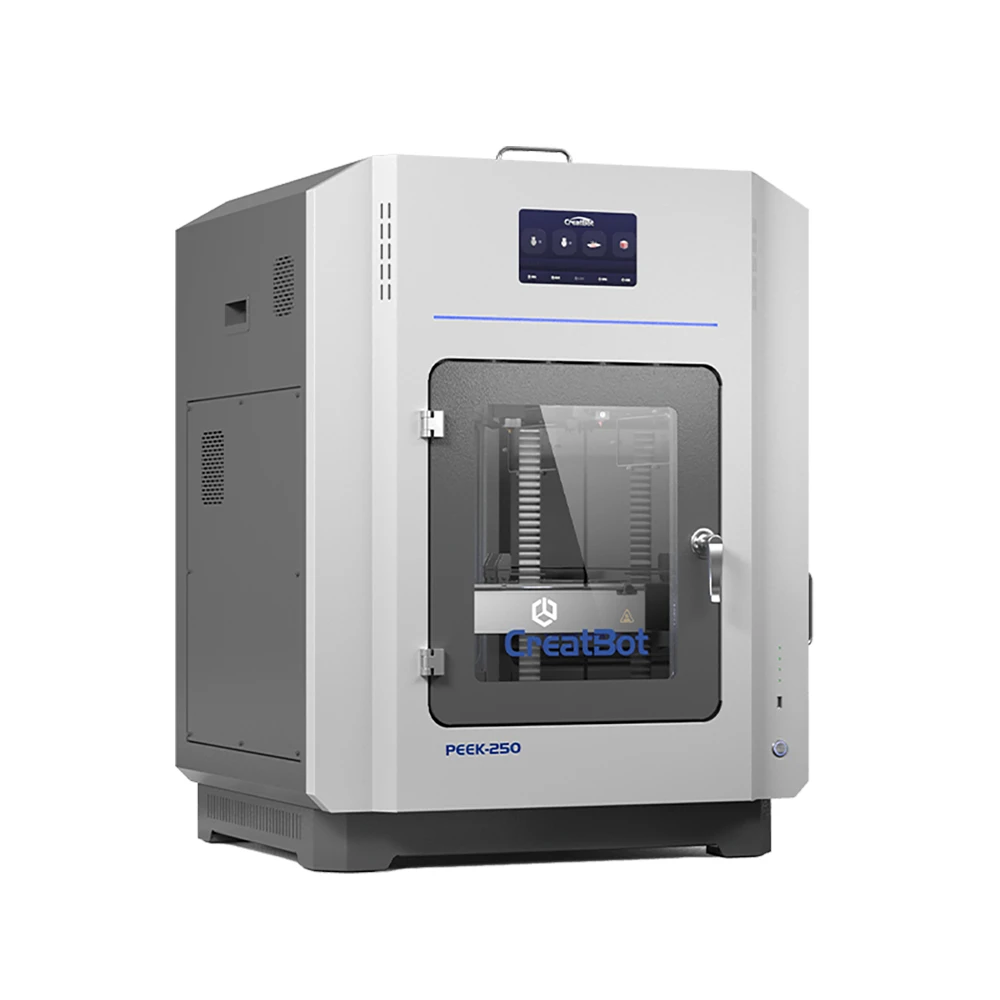 CreatBot PEEK-250 – tai profesionalus ultra-aukštos temperatūros FDM 3D spausdintuvas, sukurtas darbui su pažangiais inžineriniais ir aukštos klasės termoplastikais, tokiais kaip PEEK, PEI (ULTEM) ir PEKK. Šis modelis orientuotas į naudotojus, kuriems reikalingas maksimalus spausdinimo stabilumas, tikslus temperatūros valdymas ir galimybė gaminti mechaniškai tvirtas, termiškai bei chemiškai atsparias funkcines detales. Pilnai uždara ir iki 200 °C tolygiai šildoma kamera leidžia sumažinti vidines įtampas, išvengti deformacijų ir užtikrinti vienodą sluoksnių sukibimą visame spausdinimo tūryje. Integruota tiesioginio atkaitinimo (annealing) funkcija suteikia galimybę po spausdinimo detales apdoroti toje pačioje kameroje, neimant jų nuo platformos, taip išlaikant formos tikslumą ir maksimalias medžiagos mechanines savybes. CreatBot PEEK-250 skirtas pramoninėms, mokslinėms ir inžinerinėms užduotims, kur įprasti 3D spausdintuvai nebesugeba užtikrinti reikiamos kokybės ir patikimumo.