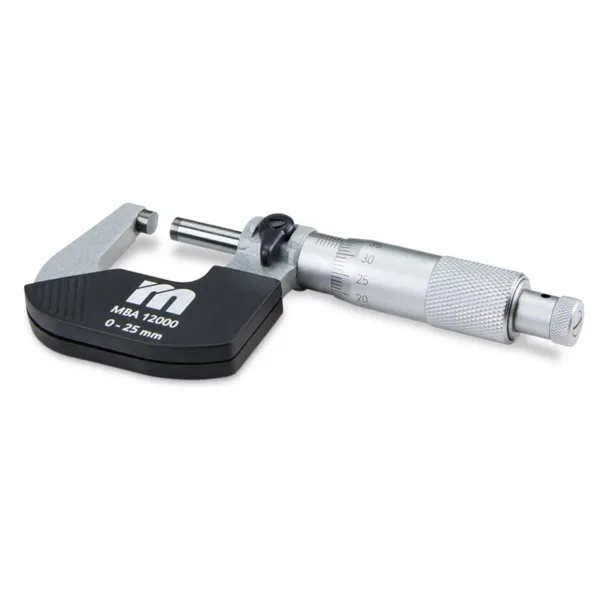 Analoginis mikrometras Meusburger MBA 12000 skirtas aukšto tikslumo išoriniams matavimams atlikti pramonėje, metalo apdirbimo, gamybos ar kokybės kontrolės srityse. Šis įrankis pasižymi fiksuojamo/ sukamojo (ratchet) tipo mechanizmu, kuris leidžia lengvai ir tiksliai reguliuoti spaudimą matuojant, taip išvengiant per didelio prispaudimo prie detalės paviršiaus. Kietai lakuota plieninė rankena suteikia patogų sukibimą ir papildomą apsaugą nuo korozijos, o karbidu dengti matavimo paviršiai užtikrina ilgą tarnavimo laiką bei stabilų matavimo tikslumą net intensyviai naudojant.