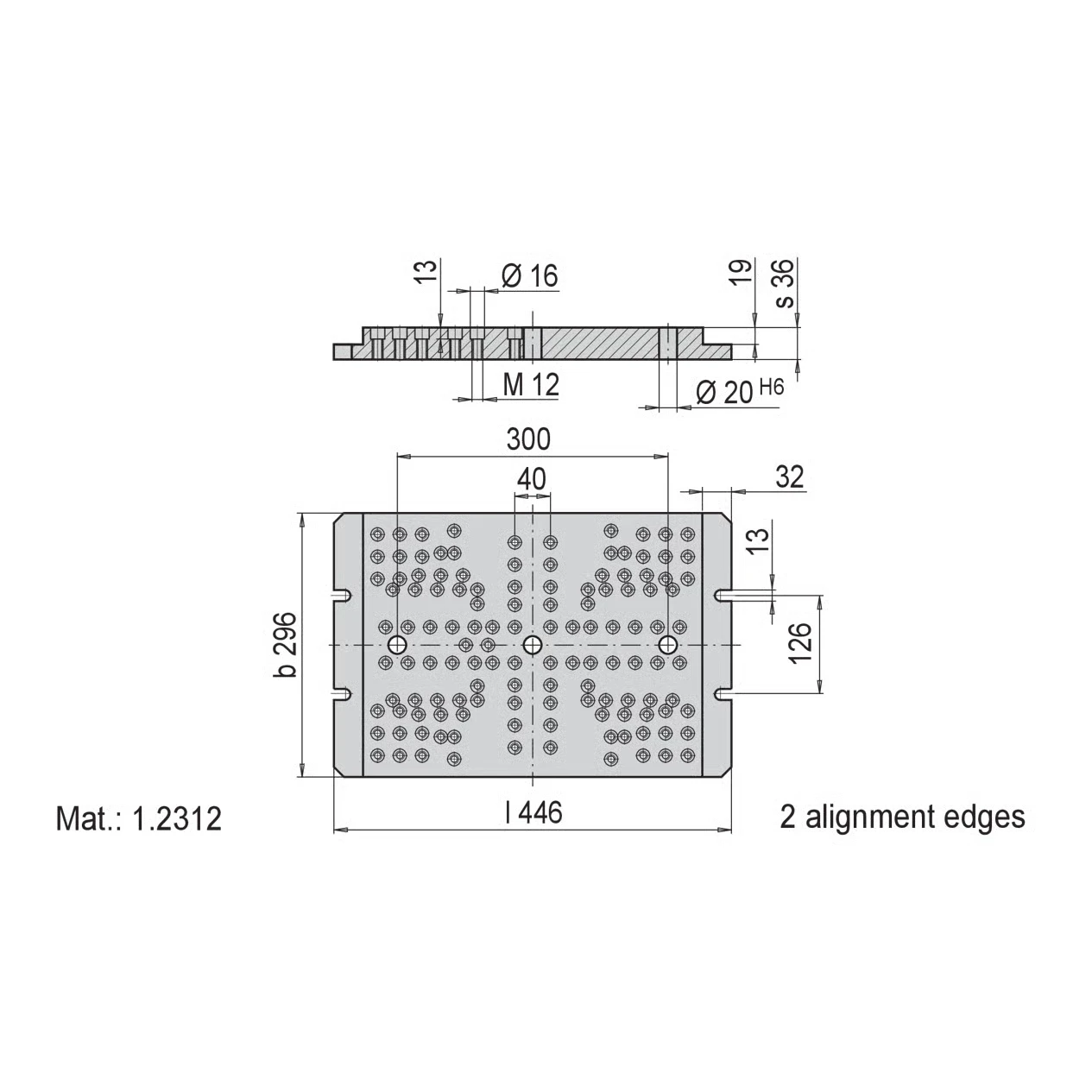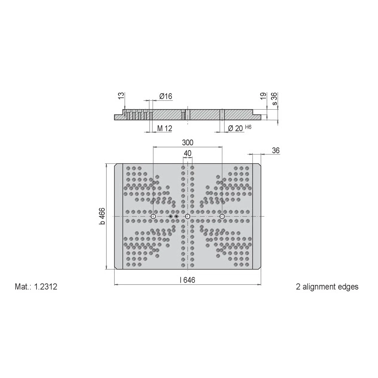 H 1000 tvirtinimo sistema gaminama iš 1.2312 plieno, užtikrinančio gerą mechaninį stabilumą ir ilgaamžiškumą. Kiekviena plokštė turi dvi orientavimo briaunas, skirtas tiksliam išlygiavimui ant staklių stalo. Sistemas galima rinktis pagal dydį – nuo kompaktiškų iki pakankamai didelių, pritaikytų stambiems ruošiniams.