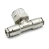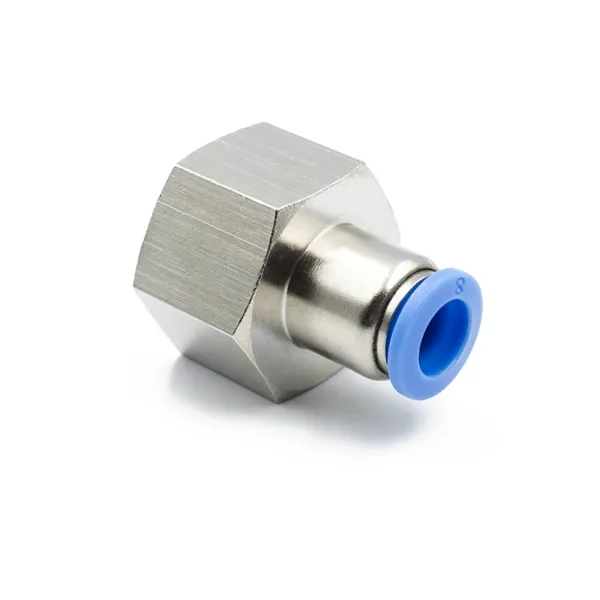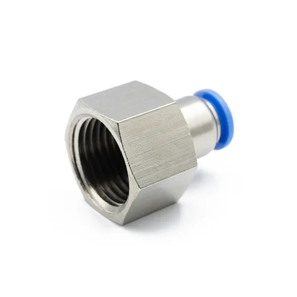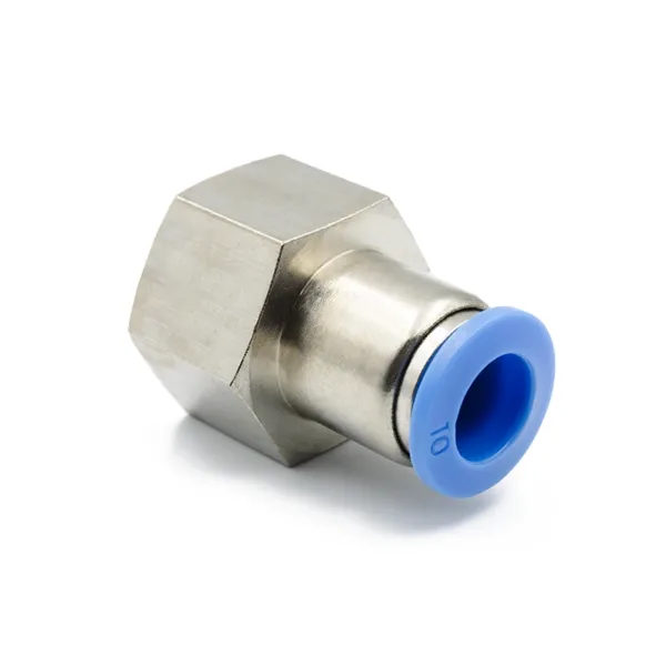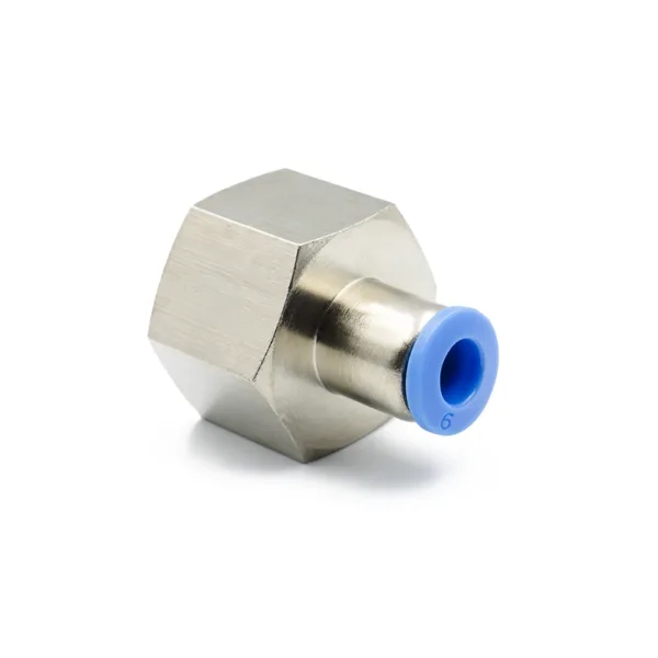 JPCF serija – yra tiesios pneumatinės greito sujungimo jungtys, skirtos 6-10 mm išorinio diametro žarnai ir 1/2″ (vidinio) sriegio prijungimui. Korpusas pagamintas iš nikeliu dengto žalvario, užtikrinančio atsparumą korozijai ir ilgaamžiškumą. Greito sujungimo mechanizmas su POM atleidimo žiedu ir nerūdijančio plieno (SUS) vidiniu užraktu garantuoja tvirtą žarnos fiksaciją ir lengvą atjungimą. Šios jungtys gali būti naudojamos tiek suslėgtam orui, tiek vakuumui – aktuatoriuose, oro paruošimo sistemose ar kryptiniuose vožtuvuose.