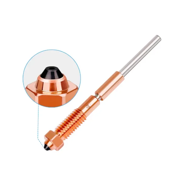 Integruotas grūdinto plieno ekstruderio purkštukas MINGDA MD-400D – tai profesionalus, itin atsparus mechaninei trinčiai ekstruderio purkštukas, specialiai sukurtas MD-400D IDEX serijos 3D spausdintuvams. Pagamintas iš grūdinto įrankinio plieno ir padengtas aukštos kokybės apsaugine danga nuo oksidacijos bei korozijos, šis purkštukas užtikrina nepriekaištingą medžiagos pratekėjimą, mažesnę užsikimšimų riziką ir ilgesnį tarnavimo laiką. Tikslus CNC apdirbimas garantuoja vientisą medžiagos padavimą ir stabilų spausdinimo procesą, todėl rezultatas – švarūs paviršiai ir užtikrintas tikslumas. Rekomenduojama naudoti su inžinerinėmis 3D spausdinimo medžiagomis.