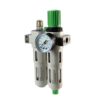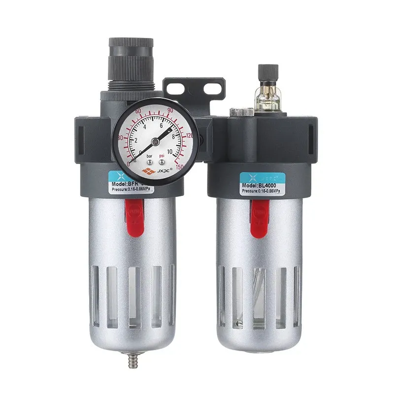 BFC4000 serijos oro paruošimo mazgai sukurti užtikrinti patikimą suspausto oro tiekimą ir ilgalaikę pneumatinės sistemos veiklą. Kompaktiška konstrukcija ir įmontuotas savaiminio užsirakinimo mechanizmas apsaugo nuo nustatyto slėgio pokyčių dėl išorinių trikdžių, todėl įrenginys stabiliai dirba įvairiomis darbo sąlygomis. Įrenginys pasižymi mažu slėgio nuostoliu, aukštu vandens atskyrimo efektyvumu bei didele filtravimo kokybe. Skaidrus alyvos indo korpusas leidžia tiesiogiai stebėti alyvos lašėjimą, užtikrinant paprastą priežiūrą ir valdymą. Naudojant dulkių neturinčias gamybos patalpas ir automatizuotas linijas, gaminys įgauna vientisą, lygią ir estetišką išvaizdą. Kiekvienas įrenginys gamybos metu testuojamas, siekiant užtikrinti tikslius matmenis ir 100 % sandarumą.