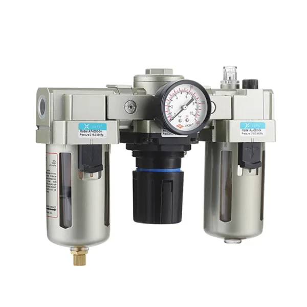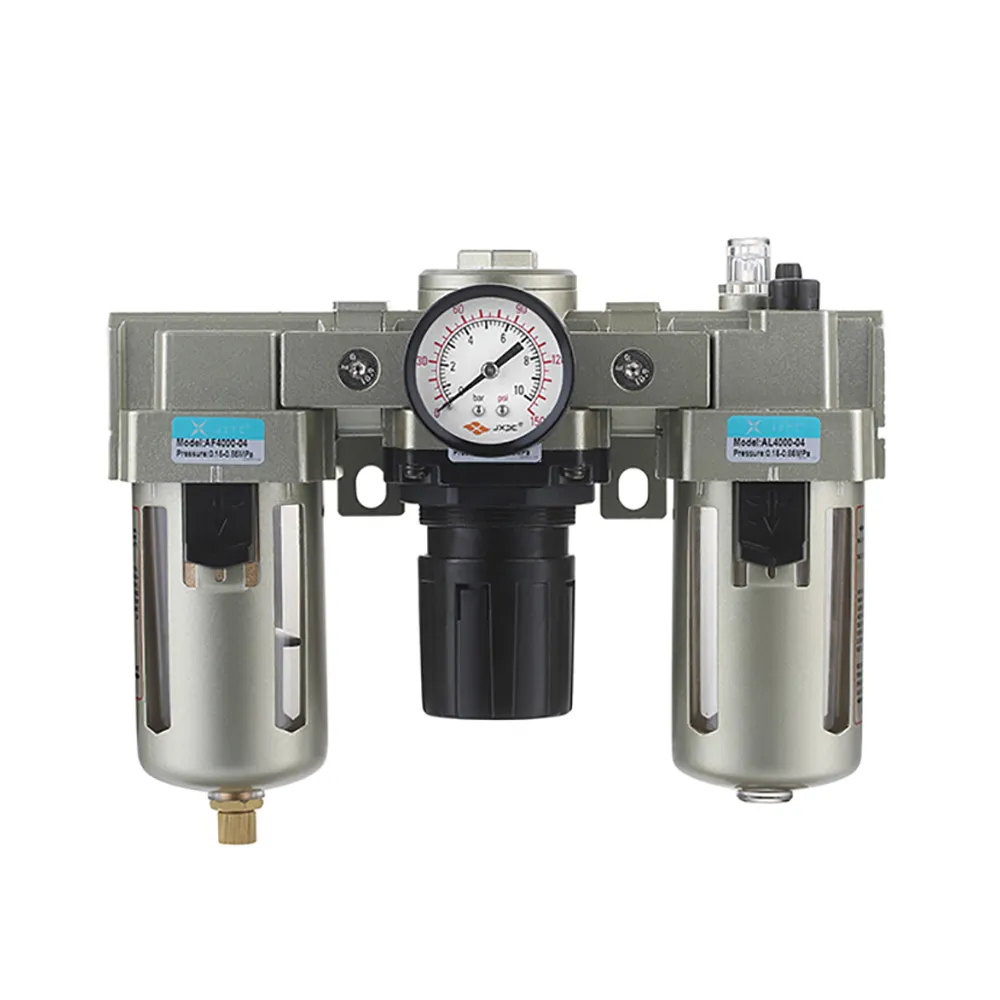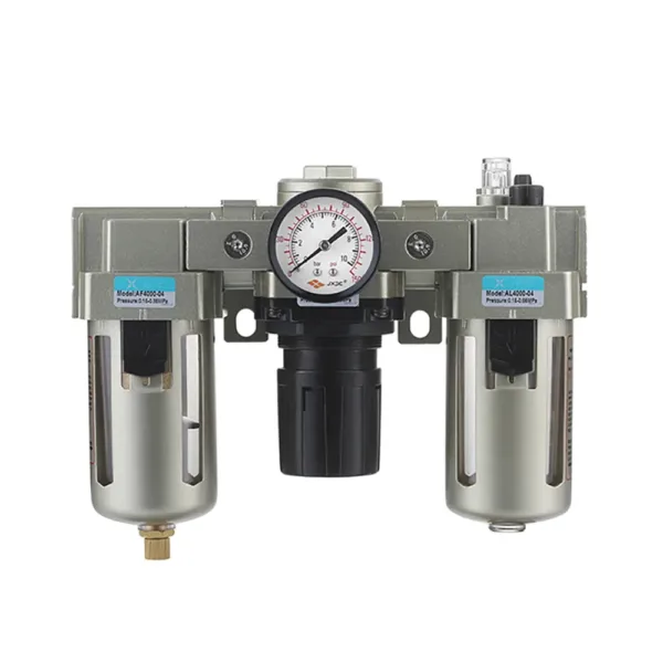 JAC4000 serijos oro paruošimo mazgai sukurti užtikrinti patikimą suspausto oro tiekimą ir ilgalaikę pneumatinės sistemos veiklą. Kompaktiška konstrukcija ir įmontuotas savaiminio užsirakinimo mechanizmas apsaugo nuo nustatyto slėgio pokyčių dėl išorinių trikdžių, todėl įrenginys stabiliai dirba įvairiomis darbo sąlygomis. Įrenginys pasižymi mažu slėgio nuostoliu, aukštu vandens atskyrimo efektyvumu bei didele filtravimo kokybe. Skaidrus alyvos indo korpusas leidžia tiesiogiai stebėti alyvos lašėjimą, užtikrinant paprastą priežiūrą ir valdymą. Naudojant dulkių neturinčias gamybos patalpas ir automatizuotas linijas, gaminys įgauna vientisą, lygią ir estetišką išvaizdą. Kiekvienas įrenginys gamybos metu testuojamas, siekiant užtikrinti tikslius matmenis ir 100 % sandarumą.
