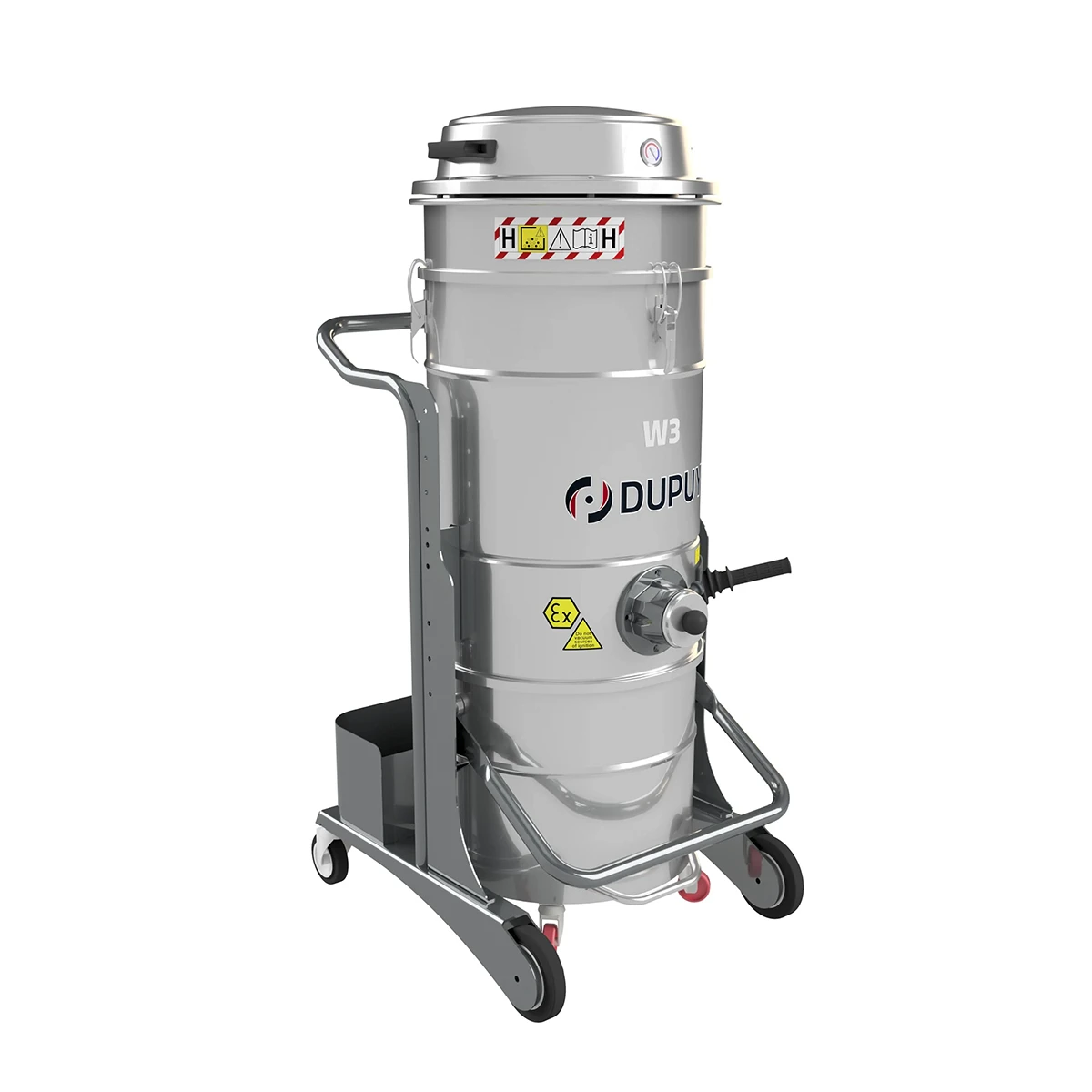 W3 AIR-EX 1/2D – tai didelės galios ATEX sertifikuotas pramoninis dulkių siurblys, veikiantis suslėgto oro pagrindu per Venturi sistemą. Įrenginys skirtas darbui pavojingose zonose (20 int/ 21 ext), kur draudžiama naudoti elektrinius variklius dėl sprogimo rizikos. Venturi siurbimo modulis neturi elektrinių komponentų ir nereikalauja techninės priežiūros. Konstrukcija – 100 % plieninė, su lengvai ištuštinamu konteineriu ir integruota filtro valymo sistema. Galimos 2 versijos: 19V ir 25V, su 65 l arba 100 l talpos konteineriu.