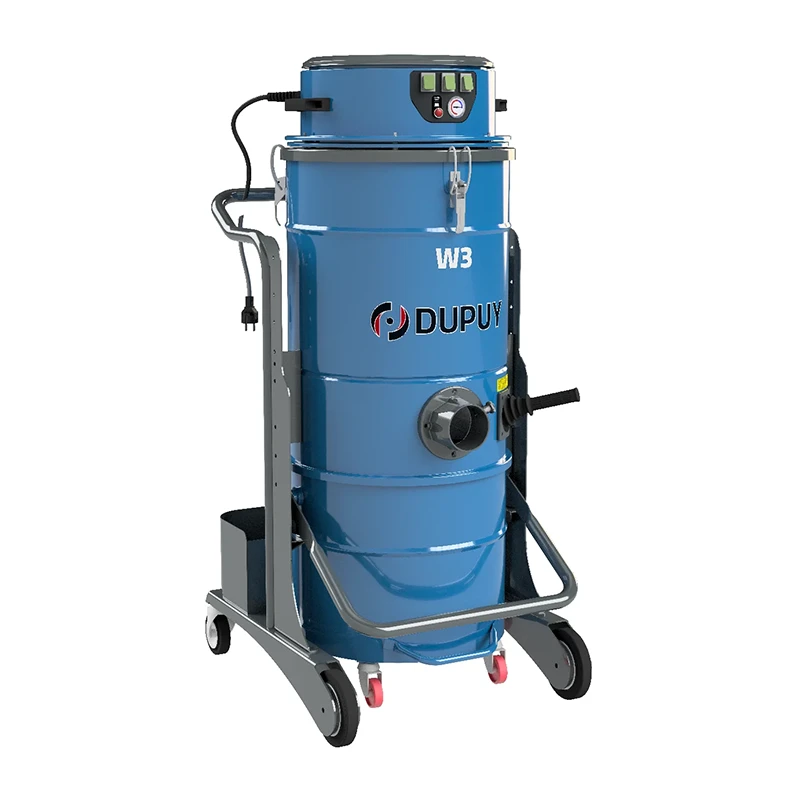 DU-PUY W3 – tai galingas vienfazis pramoninis dulkių siurblys, pritaikytas nuolatiniam darbui intensyvioje aplinkoje. Trijų by-pass variklių sistema, plati filtravimo zona, įvairios talpos konteineriai ir galimybė naudoti vienkartinius maišus leidžia jį efektyviai naudoti įvairiose pramonės šakose.