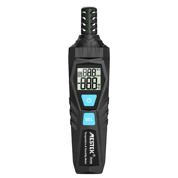 TH10 yra išmanus bekontaktis drėgmės ir temperatūros matuoklis be jokių elektrodų. Šis nešiojamasis įrankis skirtas matuoti drėgmės lygį ir temperatūrą įvairiose aplinkose, tokiose kaip: namuose, butuose, biuruose, laboratorijose, šiltnamiuose, dirbtuvėse ir kt.