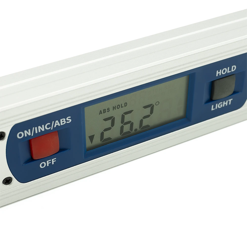 Dasqua 8301-2645 – tai tikslus ir universalus skaitmeninis gulsčiukas, skirtas profesionaliam naudojimui dirbtuvėse, gamyboje, statyboje ar montavimo darbuose. 400 mm ilgio korpusas ir 360° matavimo diapazonas leidžia patogiai atlikti tiek horizontalius, tiek vertikalius ir kampinius matavimus. Įrankis leidžia atlikti keturias pagrindines matavimo funkcijas: absoliutų kampo matavimą, santykinį kampo skirtumo nustatymą tarp dviejų paviršių, posvyrio konvertavimą į kampą ir kampo konvertavimą į posvyrį. Tai suteikia didelį lankstumą atliekant įvairius techninius darbus. Didelis, apšviestas LCD ekranas su „hold“ funkcija užtikrina aiškų rodmenų nuskaitymą net ir prasto apšvietimo sąlygomis. Tvirtas aliuminio korpusas su CNC frezuotais, idealiai lygiais kraštais užtikrina aukštą matavimo stabilumą ir ilgaamžiškumą. Integruoti stiprūs neodimio magnetai leidžia saugiai pritvirtinti gulsčiuką prie metalinių paviršių.