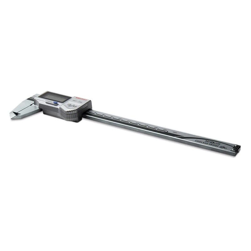 Skaitmeniniai slankmačiai Mitutoyo Digimatic Coolant Proof – tai visiškai patikimi (IP67 apsaugos klasė) ir preciziški Digimatic serijos įrankiai, skirti profesionaliems matavimo darbams pramonėje ir kokybės kontrolėje. Šie modeliai aprūpinti pažangiu AOS (Advanced Onsite Sensor) elektromagnetinės indukcijos tipo jutikliu, kuris apsaugo nuo matavimo klaidų dėl dulkių, alyvos ar aušinimo skysčio. Dėl šios technologijos matavimo signalas išlieka stabilus net esant nešvarumams ant skalės paviršiaus. Integruota ABS (Absolute) skalė pašalina poreikį nustatyti nulį kiekvieno įjungimo metu ir leidžia dirbti su neribotu matavimo greičiu. Didelis kontrastinis LCD ekranas su 9 mm simbolių aukščiu užtikrina patogų matomumą, o ilga baterijos veikimo trukmė (apie 5 metai) garantuoja patikimą naudojimą be dažnų pakeitimų. Visi modeliai gaminami Mitutoyo Japonijoje, iš aukštos kokybės nerūdijančio plieno, su tiksliomis šlifavimo tolerancijomis.