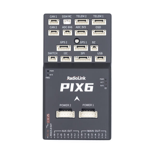 RadioLink PIX6 MultiCopter Edition – tai profesionalaus lygio skrydžio kontrolės sistema, sukurta specialiai daugiamotoriams orlaiviams (angl. quadcopters, hexacopters, octocopters). Šiame komplekte rasite viską, ko reikia orlaivio skrydžio stabilizavimui, energijos stebėsenai ir FPV informacijos perdavimui. PIX6 palaiko ArduPilot programinę įrangą, leidžiančią naudoti pažangius skrydžio režimus, tokius kaip Loiter, Position Hold, Return to Home, Auto Missions bei FailSafe funkcijas. Aukštos kokybės jutikliai užtikrina tikslų valdymą net ir sudėtingomis oro sąlygomis, o integruota OSD sistema leidžia stebėti skrydžio duomenis tiesiog FPV ekrane ar akiniuose – be papildomų modulių. Sistema palaiko iki 12S akumuliatorių, ESC protokolus PWM, OneShot, DShot, turi kelias UART, CAN ir I2C jungtis. Skrydžio valdiklis suderinamas su įvairiais imtuvais (SBUS, PPM, DSM, CRSF) ir FPV sistemomis.